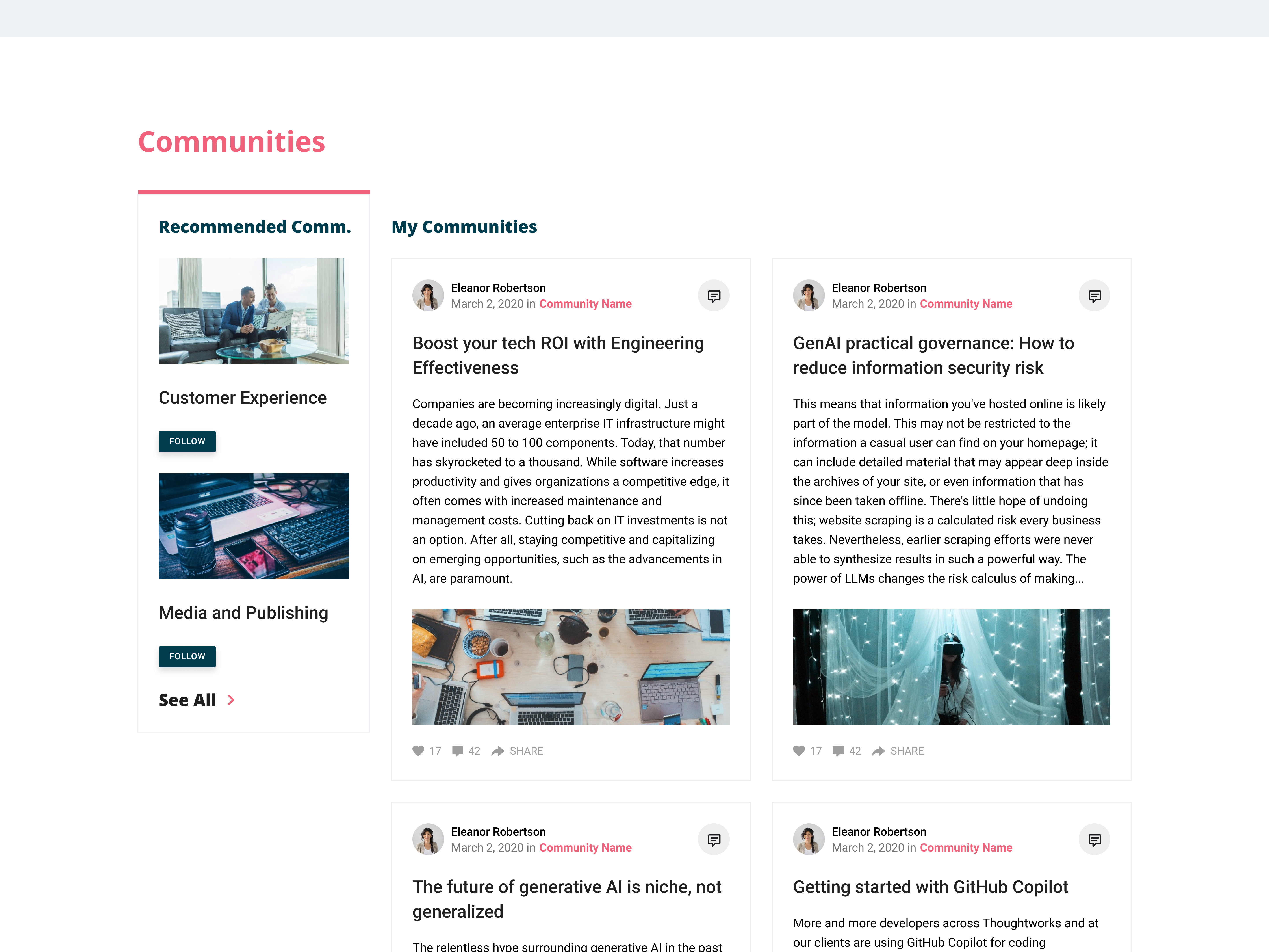 Use clear subheadings or widget titles to allow users to quickly scan page content. Helping users find what they need at a quick glance.